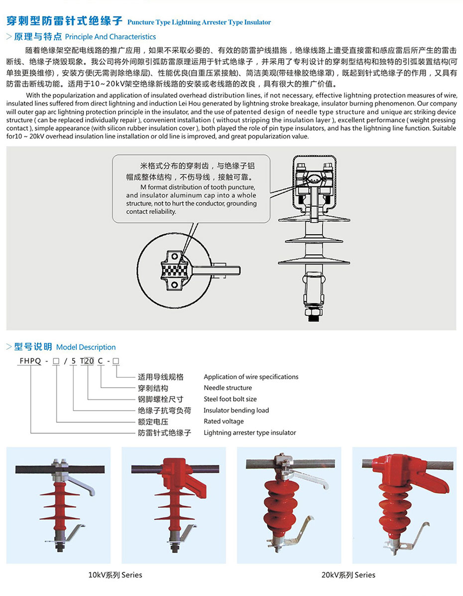 穿刺型防雷针式绝缘子